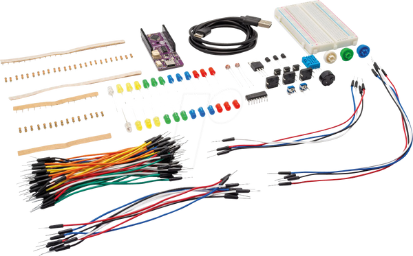 Pažljivo sastavljen komplet koji uključuje Dasduino (Arduino kompatibilnu ploču) sa elektronskim komponentama, što olakšava početak eksperimentisanja sa Arduino i drugim razvojim pločama. Komplet sadrži korisne otpornike, LED diode, kondenzatore i, naravno, breadboard sa kablovima na kojem možete povezati komponente sa razvojnom pločom.