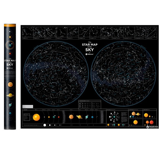 Mapa sazvežđa koja sija noću, koja Vam pomaže u pronalasku horoskopskog znaka međ ‘iljadu zvezda i koja služi za izučavanje Galaksije. Sve u jednom. Odličan poklon za romantičare, radoznale i sve one koji su fascinirani lepotom kosmosa. Idealan način da sakrijete zvezde u svojoj sobi. Karta je odštampana na visoko kvalitetnom laminirajućem papiru, koji je presvučen fosforom što mapi omogućava da sija noću. Svi detalji su sakriveni na mapi dimenzija 60x80 cm. Konstalacije, Mlečni put i horoskopski znaci nalaze se na ovoj jedinstvenoj mapi koja sija noću. Mapa takođe prikazuje informacije u vezi Solarnog sistema, fazama Meseca i odnosom Sunca u odnosu na ostale planete.Da ne zaboravimo, uz mapu dolaze i stikeri za ukrašavanje. Karakteristike: - Dimenzije: 60x80 cm, - Štampano u Evropi,- Uz mapu dolaze i stikeri za ukrašavanje.