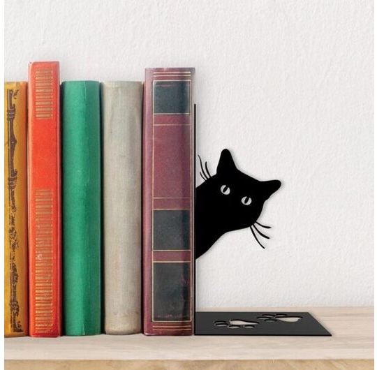 Držač Knjiga Mačka koja kado da viri iz knjiga. Ovo je jedan od kreativnih držača knjiga iz naše ponude. Moderan i originalan, može biti dobar poklon za svaku osobu koja voli da čita ili čija biblioteka ima problem sa ravnotežom knjiga. Fantastičan podupirač za knjige koji će izmamiti pogled svakom gostu Vašeg doma. Na kraju krajeva, crna silueta mačke je u odličnom kontrastu sa koloritnim knjigama pa u prostoru izgleda upečatljivo.
