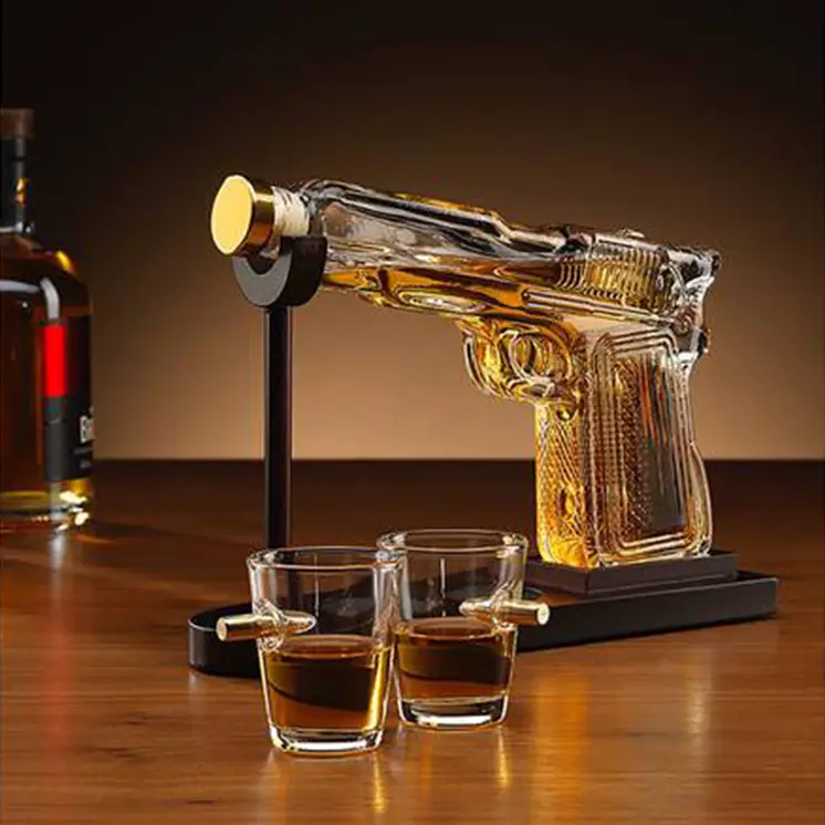 Dekanter Pištolj Set čini dekanter u obliku pištolja i dve čaše sa metkom koje imaju stakleni pancir pa nisu dalje mogli. Inače, ovo je mafijaški akcioni fazon za one koji se osećaju kao Toni Montana. Zaboravi na dosadne flaše koje samo stoje na stolu i sakupljaju prašinu. Vreme je da uneseš malo "akcije" u svoj kućni bar. Ovaj dekanter u obliku pištolja je jedino oružje koje ti je potrebno za ubitačno dobru žurku.