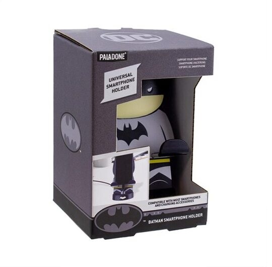 Betmen Držač Telefona visine oko 13 cm je napravljen od čvrste plastike kako bi čuvao Vaš pametni telefon kao što čuva i Gotam od svih onih zlikovaca koji ga žele uništiti. Telefon u ovom držaču može stajati ili vertikalno ili horizontalno. Idealan je za video pozive pošto se može podesiti onako kako Vama odgovara.