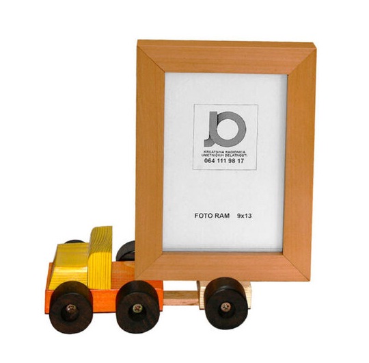 Ram za slike Kamion, je predivan ram za dečiju sliku dimenzija 9 x 13 cm koji je u eko fazonu, napravljen od ekološki posečenog drveta pri čemu kamion ne zagađuje okolinu. Sve u svemu, nesvakidašnji, neobičan i krajnje kreativan ram za sliku koju svako može provozati tj.prokotrljati kućom.