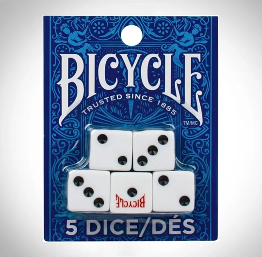 Brend Bicycle nije samo poznat po kartama, nego i po kockicama. Bicycle Kockice su jedna od najtraženijih dodataka za jednu društvenu igru. Stoga smo odlučili nabaviti kockice specijalno za društvene igre u kojima možete koristiti kockice. U kompletu dobijate 5 kockica što je sasvim dovoljno za većinu igara iako npr.za jamb treba 6 kockica od kojih se 5 najboljih upisuje.