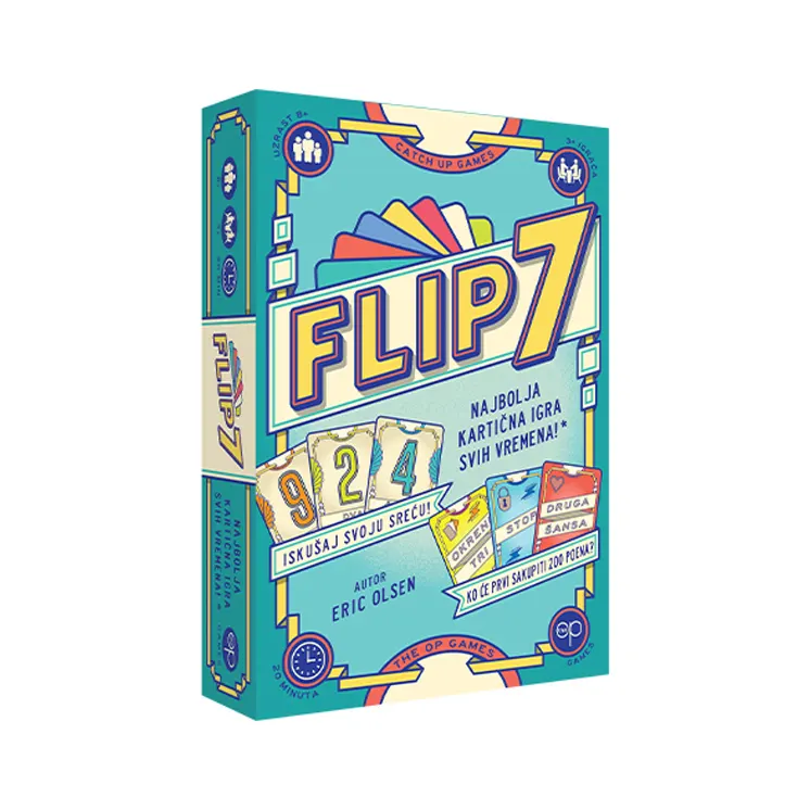 Flip 7 je društvena igra na srpskom jeziku u kojoj je cilj da okrećete karte jednu po jednu, a da ne okrenete isti broj dva puta. Zvuči lako? Razmislite ponovo! Ovo nije bilo koji špil karata. U društvenoj igri Flip 7 postoji samo jedna jedinica, dve dvojke, tri trojke... i dvanaest dvanaestica, plus nekoliko posebnih karata koje vam mogu doneti dodatne poene, dati vam drugu šansu ili izbaciti vas ili vaše protivnike iz runde.