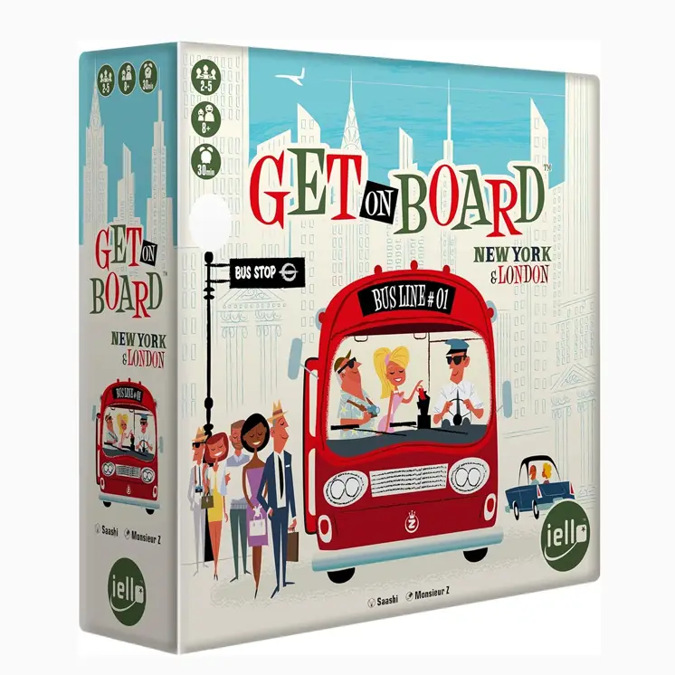 Karte na Pregled (Get on Board: New York and London na srpskom jeziku) je društvena igra koja se igra kroz dvanaest rundi u kojima ćete izgraditi najbolju autobusku liniju u gradu. Svaka runda otkriva novu kartu koja svakom igraču pokazuje oblik rute koji mora da završi. Shodno tome, postavite svoj autobus na centralnu tablu. Odvedite putnike tamo gde žele da idu tako što ćete povezati njih i njihovu destinaciju Vašom autobuskom linijom, izbegavajte saobraćaj i osvojite što više poena kako biste pobedili! Da li ste spremni za ovo putovanje?