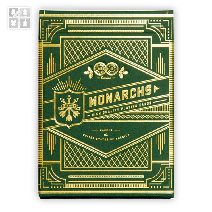 Monarch Green karte pravljene su za monarhiju tj.za kralja. U ovim kartama dali su sve od sebe kako bi služile najboljima. Ove karte zaslužile su prvo mesto u GQ Holiday Gift vodiču. Miks zlata i zelene boje u kombinaciji sa elegancijom, zaista im opravdava mesto u jednoj palati. Dizajnirao Theorz11, proizvedene su u SAD, na FSC sertifikovanom papiru, odštampane po Q1 kvalitetu sa Premium 909 završetkom.