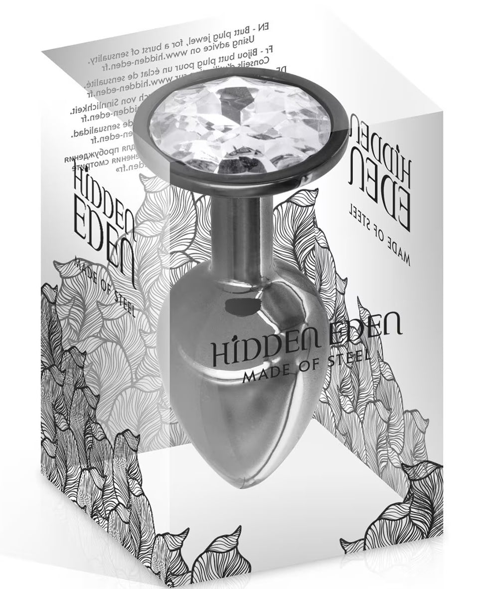 Elegantni Hidden Edden Black analni plug izrađen je od aluminijuma i ukrašen belim kristalom koji zavodljivo naglašava vašu pozadinu. Savršeno gladak, idealne veličine i prijatne težine, nudi senzacije koje lako podižu igru na luksuzniji nivo.