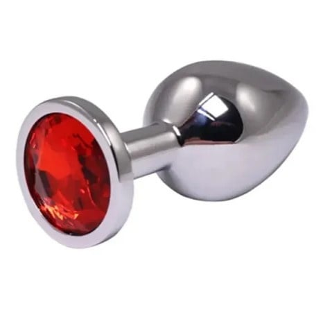 Metalni analni plug Crveni kristal | Veličina S. Dodajte dozu sofisticiranosti i senzualne stimulacije svojim intimnim trenucima uz mali metalni analni plug sa lila kristalom ! Izrađen od glatkog, visokokvalitetnog metala, ovaj plug pruža prijatan osećaj težine i senzualnog pritiska, dok njegov suženi vrh omogućava lako umetanje.