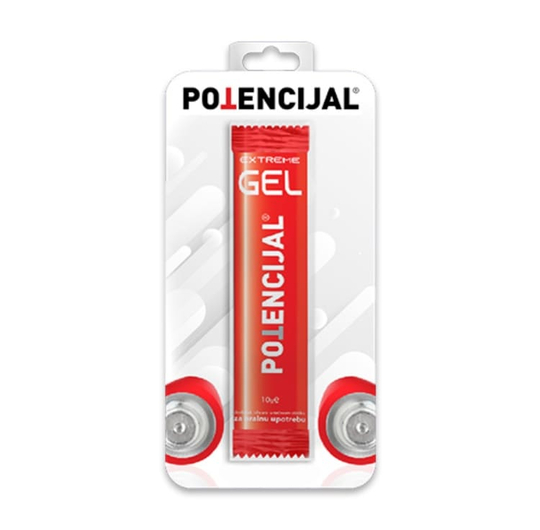 Potencijal Extreme gel je preparat za potenciju sa formulom za brzo i jako dejstvo. Uzimanjem gela 30-45 minuta pre seksualnog odnosa, postiže se jača erekcija, seksualna želja, energija i izdržljivost. Gel se rastvara direktno u ustima. Ekstrakt korena ašvagande, suvi ekstrakt ploda tribulusa, suvi ekstrakt korena make, suvi ekstrakt korena azijskog ženšena, cink, L-arginin. Pakovanje 10g.