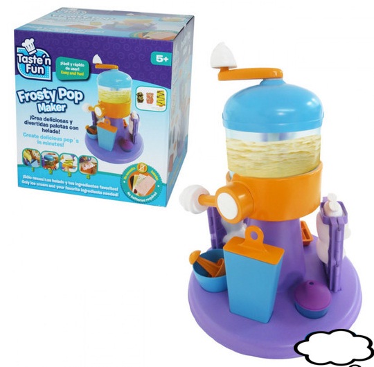 Radionica za izradu sladoleda na štapiću. Sadrži: aparat za izradu sladoleda, plastičnu bocu, posudu, posudu s poklopcem, fiokicu, avan, 3 kalupa sa štapićima.