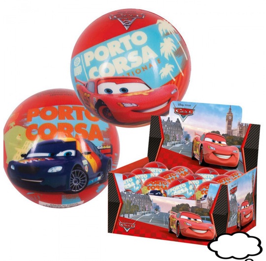 Mekana loptica prečnika 7,5 cm, izrađena od poliuretanske pene, oslikana likovima iz animiranog filma Cars (Auti). 24 komada u kutiji-display-u (16x32x23 cm)