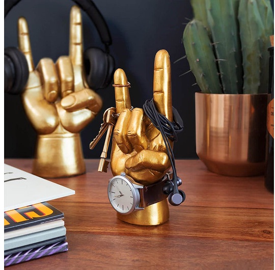 Rock On Mini je rokerski držač slučalica starijeg i većeg brata Rock On. Volite muziku, ali mrzite traženje mesta gde ste poslednji put ostavili slušalice? Onda je Rock On Mini za vas. Ova zlatna figura rokerskog fazona privući će svačiju pažnju. Bez obzira koji rok iz koje dekade da slušate, Rock On vam omogućava da slušalice uvek budu pri ruci.