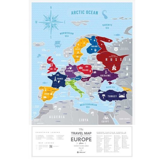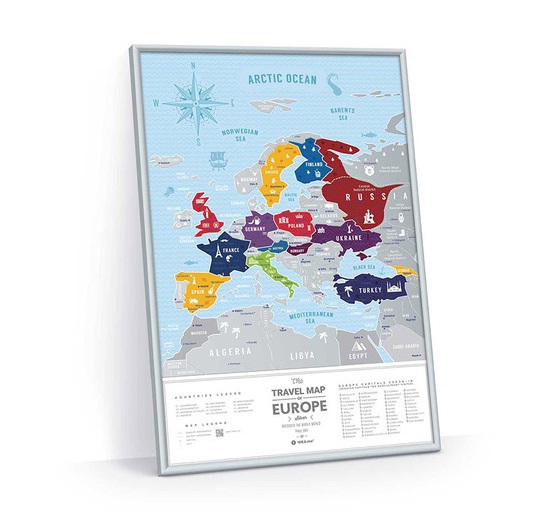 Greb Karta Evropa Srebrna je mapa kontinenta koga valja prvog poharati, jer ipak smo rođeni u njoj. Tako mali kontinent, a tako mnogo država. Spisak pomaže i mala legenda na mapi. U tubi pored mape dolaze i mali dodaci kao što je grebalica i mini stikeri koje možete zalepiti na mesta gde ste bili. Karta je odštampana na visoko kvalitetnom papiru.