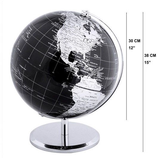 Globus Metalik Crni 30 cm je više od ukrasa. Savremen globus modernog izgleda sa veoma stabilnom bazom, savršen za dekoraciju kuće ili kancelarije. Sam proizvod se okreće na čvrstom postolju. U pitanju je globus impresivnih detalja, prečnika 30 cm, sa veoma kvalitetnom i detaljnom štampom i jasnim oznakama, ucrtanim državama, političkim granicama, glavnim gradovima i još mnogo toga.
