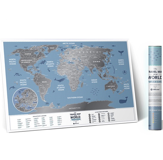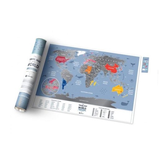 Mapa je upakovana u prelepu tubu, odštampana na sjajnom laminiranom papiru. Da ne bi mapa bila dosadna što se tiče velikih teritorija, znajte da su one podeljene na regije, države i provincije. Ipak kada posetite Moskvu, to ne znači da ste obišli celu Rusiju. Isto važi i za Sjedinjene Američke Države. Nije Nju Jork cela Amerika. Ovde varanja nema. Svaka mapa sadrži i 15.stvari koje mora da uradi svaki svetski putnik.