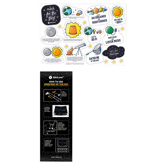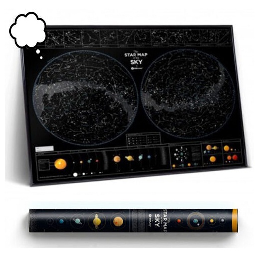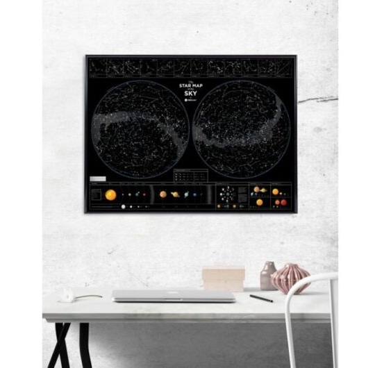 Mapa sazvežđa koja sija noću, koja Vam pomaže u pronalasku horoskopskog znaka međ ‘iljadu zvezda i koja služi za izučavanje Galaksije. Sve u jednom. Odličan poklon za romantičare, radoznale i sve one koji su fascinirani lepotom kosmosa. Idealan način da sakrijete zvezde u svojoj sobi. Karta je odštampana na visoko kvalitetnom laminirajućem papiru, koji je presvučen fosforom što mapi omogućava da sija noću. Svi detalji su sakriveni na mapi dimenzija 60x80 cm. Konstalacije, Mlečni put i horoskopski znaci nalaze se na ovoj jedinstvenoj mapi koja sija noću. Mapa takođe prikazuje informacije u vezi Solarnog sistema, fazama Meseca i odnosom Sunca u odnosu na ostale planete.Da ne zaboravimo, uz mapu dolaze i stikeri za ukrašavanje. Karakteristike: - Dimenzije: 60x80 cm, - Štampano u Evropi,- Uz mapu dolaze i stikeri za ukrašavanje.