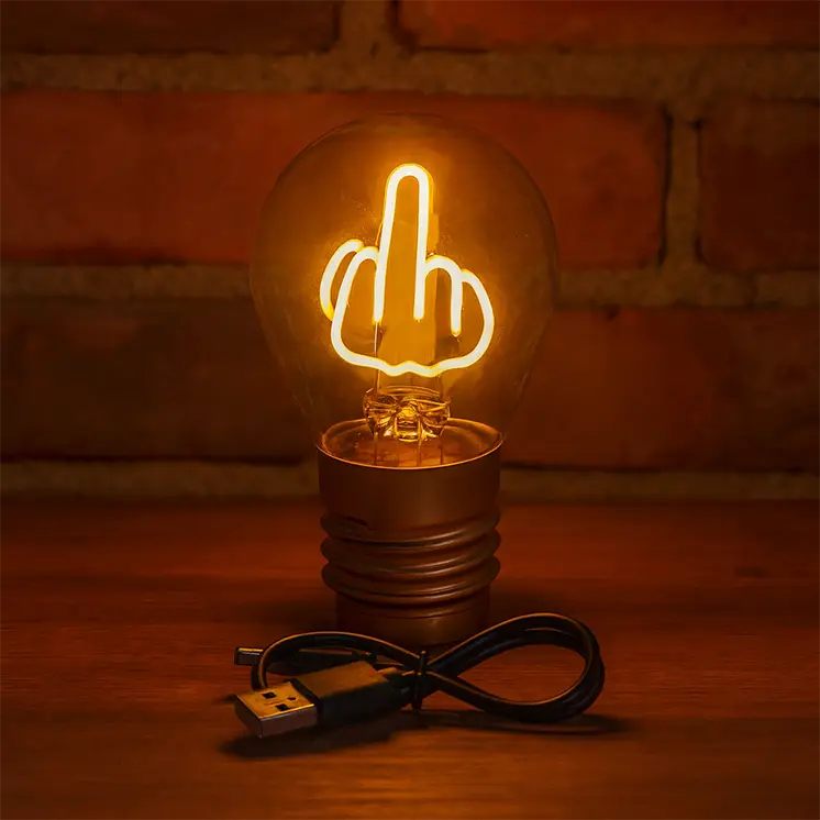 Ovo nije obična lampa. Ovo je lični stav. Upališ je – i prostorija odmah zna tvoje raspoloženje. Idealna za kancelariju, dnevnu sobu, „mušku sobu“, gejming kutak ili kao ultimativni poklon za osobu koja ima taj smisao za humor.