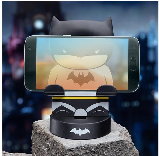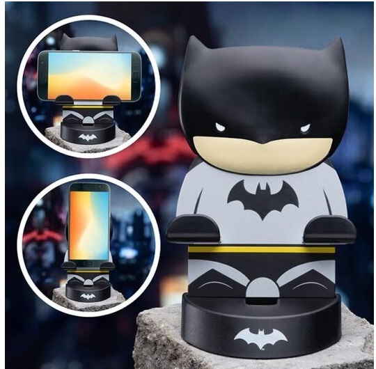 Betmen Držač Telefona visine oko 13 cm je napravljen od čvrste plastike kako bi čuvao Vaš pametni telefon kao što čuva i Gotam od svih onih zlikovaca koji ga žele uništiti. Telefon u ovom držaču može stajati ili vertikalno ili horizontalno. Idealan je za video pozive pošto se može podesiti onako kako Vama odgovara.
