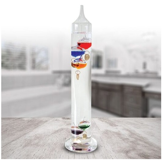 Termometar Galileo Veliki u čast jendog od najvećih mozgova ikada. Da li je neophodno objašnjavati zašto Galileo? Da li je neophodno napisati koju reč...pardon, koji sastav o čoveku...pardon, natčoveku. Nadam se da nije. No, da nastavimo dalje sa proizvodom. Termometar tj.toplomer, služi za merenje temperature. Ovaj termometar tj.toplomer, napravljen je od stakla i ispunjen je tećnošću. Baziran na ideji mozga nad mozgovima tj. Galileo Galileja. Telo iste težine i veličine kretaće se gore, odnosno dole u zavisnosti od kretanja temperature. Kuglice menjaju visinu u zavisnosti od temperature, gde svaka kuglica na sebi ima zakačen broj. Tako da ako se kreće određena kuglica eto i eureke.Ne rezumete? Pa i njega nisu mnogi kapirali u to doba, a vidim ni ja sebe baš ne kapiram. Možda ću za koju godinu kada mi neko objasni o čemu je ovde reč.