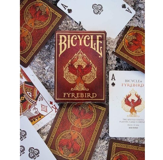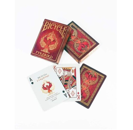 Bicycle Fyrebird karte za igranje crvene i zlatne boje, inspirisane su vatrom i toplinom.