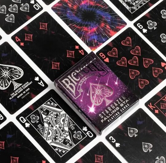 Karte za igranje Bicycle Stargazer Falling Star štampane su na premium papiru brenda Bicycle® sa Air-Cushion® završnom obradom.