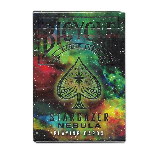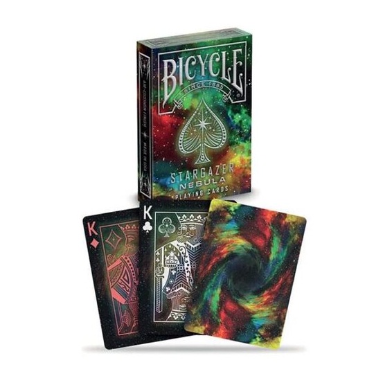 Bicycle Stargazer Nebula su premium bicycle karte sa fantastičnim dizajnom i najvišim kvalitetom koji dolazi iz fabrike USPCC-a. Nama lično, ovaj špil je nekako veoma sličan Stargazer i Sunspot špilu, te nekako predstavlja nastavak izdanja posvećenih kosmosu odnosno njegovim pojavama.