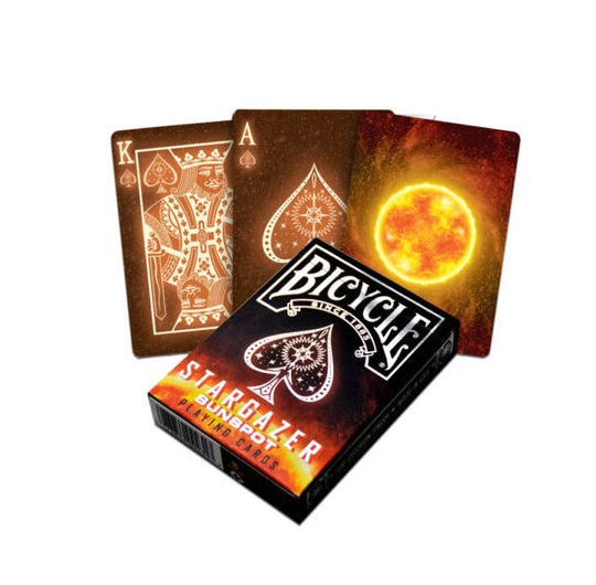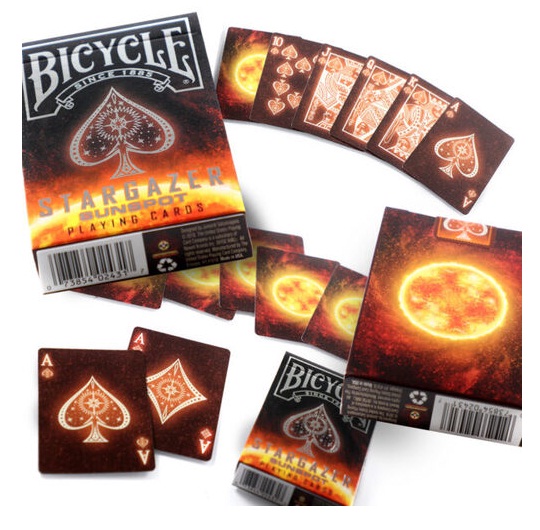 Bicycle Stargazer Sunspot je naredno izdanje Stargazer serijala, posvećeno zvezdi koja zauzima centralno mesto u našem solarnom sistemu i bez koga nema života ni na našoj planeti. Zvezda bez koje ne možemo zamisliti šivot je naše Sunce. Karte su kao i prethodno izdanje Stargazer, i Sunspot je odštampan na istom premium papiru u SAD sa Air-Cushion finišem. Karte su pre svega interesantne kardistri umetnicima pošto su bez ivica.