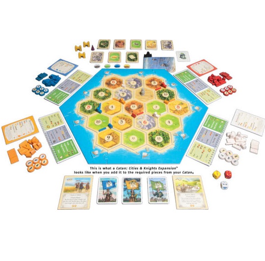 Proširenje Cities & Knights uvodi u igru nove elemente - vitezovi koji štite vaš posed, potom nove mogućnosti u izgradnji gradova koje proširuju taktičku širinu i dubinu igre.