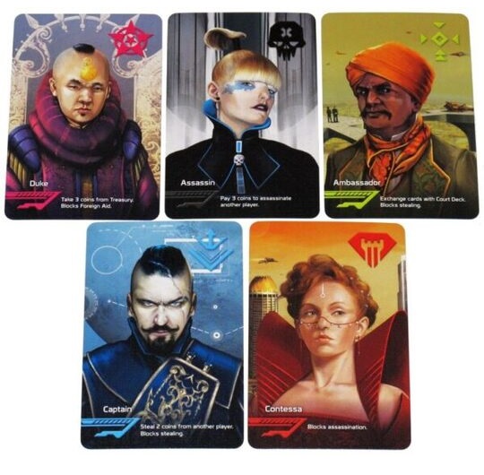 Igračima su na raspolaganju 2 karte sa ulogama koje samo on zna, dok ostali saigrači ne znaju koje uloge. Svaka uloga ima određenu akciju. Igrači mogu da iskoriste bilo koju akciju koja je na raspolaganju čak i ako nemaju tu ulogu tj.karakter ispred sebe. Ovo dozvoljava mogućnost blefiranja i obmane u igri. Međutim, drugi igrači mogu da provale Vaš blef. U koliko ste uhvaćeni u laži, gubite jednu kartu uloge tj.karaktera. U slučaju da ste ipak imali kartu uloge tj.karaktera, igrač koji Vas je prozvao na blef i pogrešio, gubi jednu kartu.