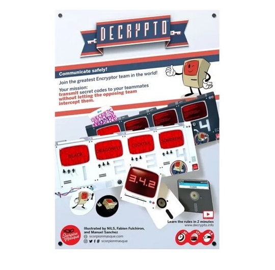 Decrypto (Kriptograf) je igra u kojoj se igrači takmiče u dva tima. U društvenoj igri Decripto (Kriptograf), pri čemu svaki pokušava da ispravno protumači šifrovane poruke koje su im predstavili njihovi saigrači dok provaljuje kodove koje presretne od protivničkog tima.
