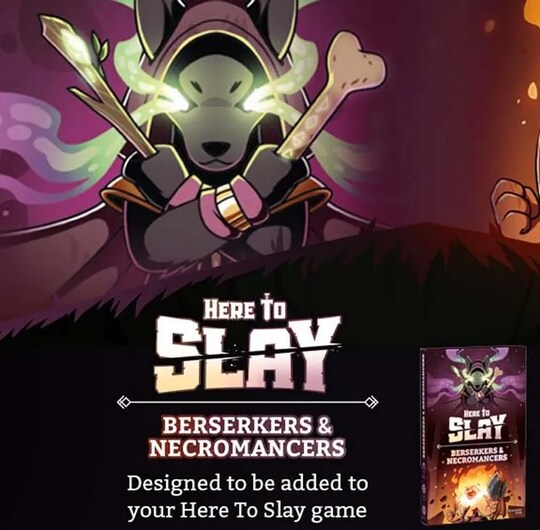 Here to Slay Berserker & Necromancer je dodatak za osnovnu igru Here to Slay. Ova igra sadrži nove vođe, heroje i opasna čudovišta.