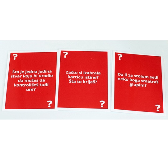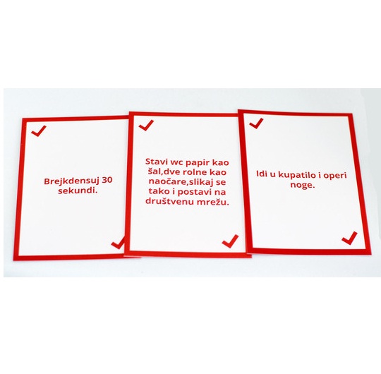 U drugom izdanju nismo ostavili ni malo prostora, tj. praznih karata, gde možete da dopišete pitanja i kazne, svojstvenih samo vašem društvu.