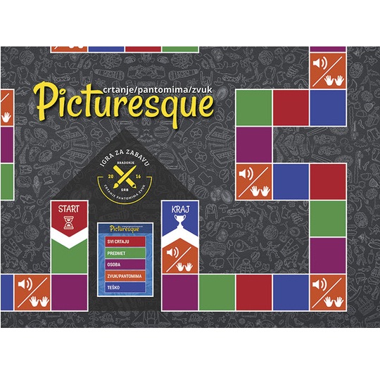 Picturesque je društvena igra koja Vas možda asocira na Pictionary, veruj te nam, ne grešite. Picturesque je srpska verzija globalno poznate igre Pictionary tj.polazna osnova je ova igra ali sa malim izmenama, i to ni manje ni više nego POBOLJŠANA verzija...jer zahteva pored crtanja i pevanje i pantomimu kao i imitaciju zvuka. Naime, igra je zaista kvalitetno odrađena i prilagođena nađem govornom području pri čemu je od orginalne igre pozajmila samo logiku igranja. Ostalo je sve novo i naše.