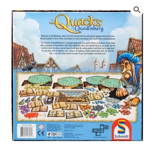 Društvena igra Quacks of Quedlinburg tera Vas da iskušavate svoju sreću do krajnjih granica. Mada nije sve do sreće, procenti su poznati, a na vama je da procenite kada rizikovati, a kada se opredeliti za siguricu. Da li ćete, nadajući se najboljem magičnom napitku, rizikovati mnogo ili ćete igrati na sigurno pa nećete impresionirati svojim znanjem, ali ćete biti sigurni!? Na vama je da odlučite, ali i da saznate šta se desi kada preterate!