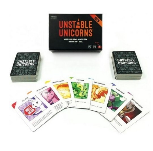 Unstable Unicorns NSFW je perverznija društvena igra klasične varijante Unstable Unicorns u kojoj je cilj da napravite svoj armiju jednoroga i zabodite nož (ili neki drugi seksi rekvizit koji imate u kući) u leđa, pardon "leđa" svim prijateljima.