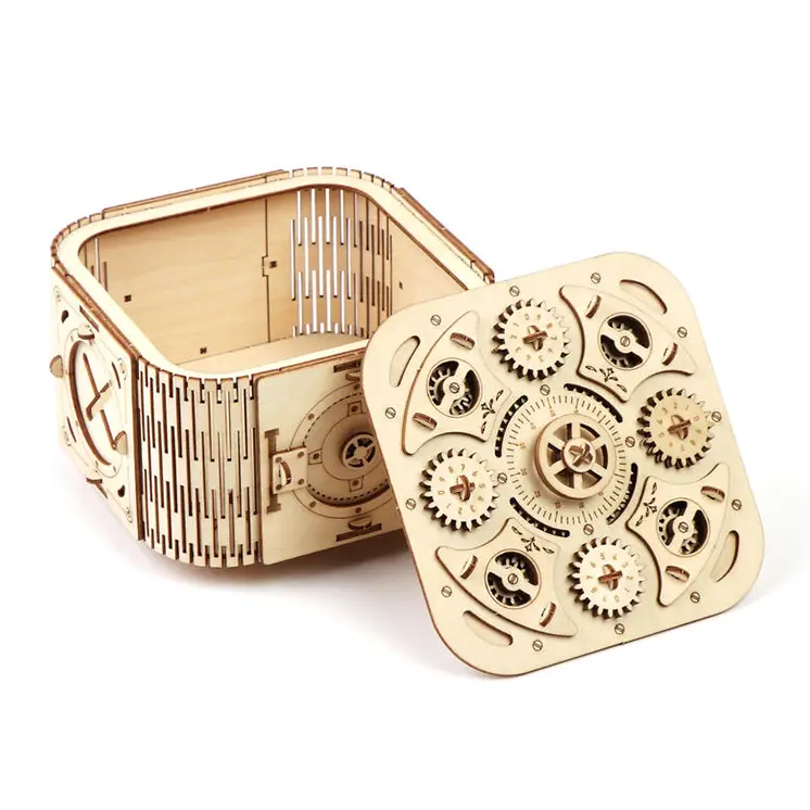 Tajna Kutija DIY Geared je tkz.Escape Box mozgalica koju je prvo potrebno sklopiti, a potom rešiti. Nakon što sami sastavite ovu glavolomku sa blagom, imaćete prelep prostor za skladištenje malih tajni sa izabranom šifrom.