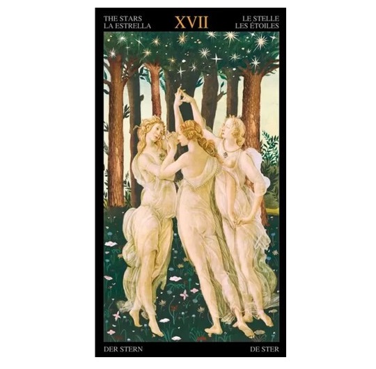 Golden Botticelli Tarot gde Veliki Majstor reinterpretira sliku punu misterioznih značenja. Simboli prisutni u Botičelijevim delima izražavaju, na prikriven način, harmoničnu viziju Prirode, koja kombinuje ideale lepote sa ezoteričnom i religioznom dimenzijom. Karte otkrivaju pažljivom posmatraču istine koje su sve dublje što se više udubljuje u analizu detalja koji čine svaku sliku.