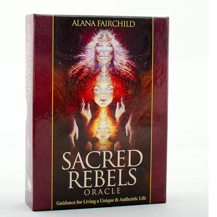 Sacred Rebels Oracle špil sadrži 45 karta kao i knjigu od 184 strane o tomme kako se koristi ovaj špil.
