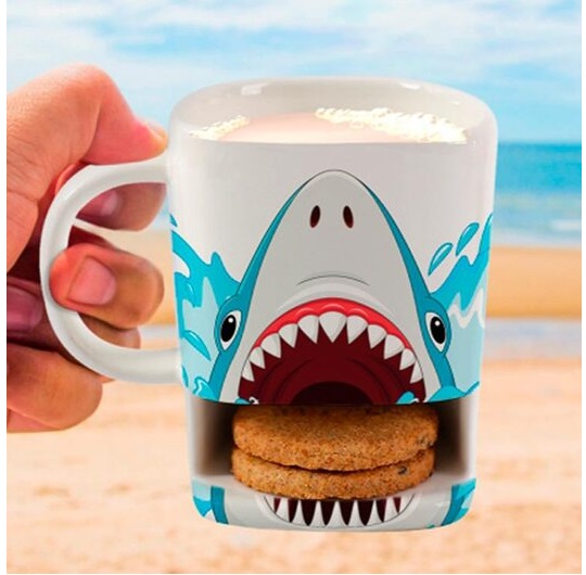 Šolja Ajkula za sve one koji se osećaju kao velike ribe (koje jedu male ribe) ili pak za one koji nisu baš svoji onog jutra kada piju iz ove šolje. Mada je ajkula dobroćudna jer čuva keks samo za vas.