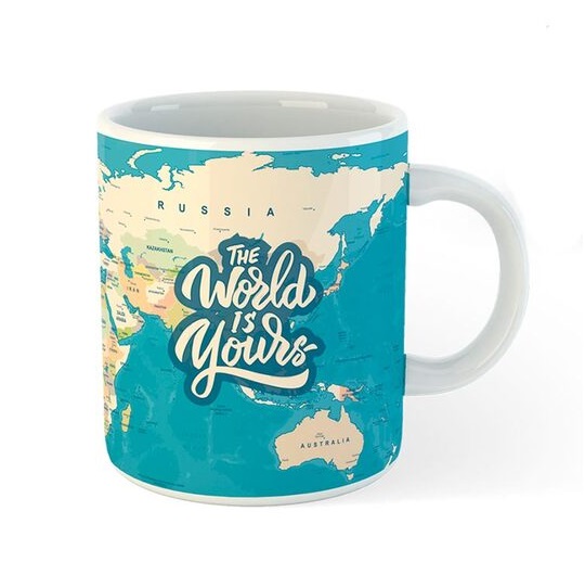 Šolja Svet Je Tvoj za one koji vole da putuju i za one kojima je želja da obiđu ceo svet! Neka putovanje počne sa šoljicom kafe ili čaja.