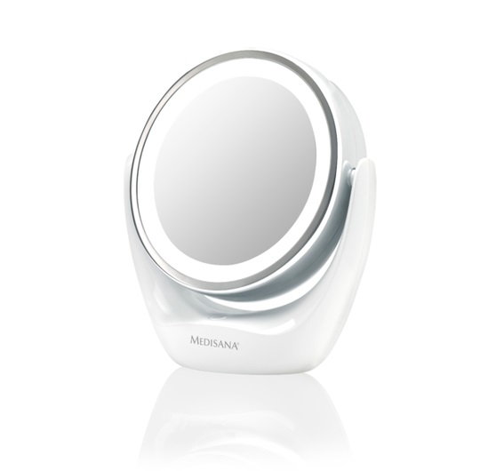 Medisana kozmetičko ogledalo daje izuzetno prijatno belo svetlo koje se može i isključiti ukoliko Vam nije potrebno. Ogledalo može prikazivati u normalnoj veličini ili 5 puta većoj. Poseduje stabilno postolje i može se rotirati za 360 stepeni.