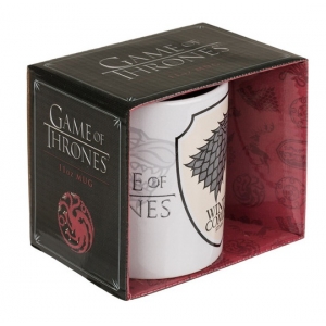 Šolja Winter is Coming je šolja sa sloganom najpopularnije kuće Stark iz romana Igra Prestola (Game of Thrones). Igra Prestola (Game of Thrones) je možda jedina epska avantura koja možda pomrsi konce Star Wars-u po pitanju broja obožavalaca. Naravno, pod uslovom da se nikada ne završi a kako je krenulo izgleda da i neće. Prednost u odnosu na Star Wars je taj što će knjiga ići u jednom pravcu dok će serija u drugom. Nisu režiseri smogli snage ni strpljenja da čekaju debeljka dok ne završi knjige. Vele oni sebi, pre će ovaj da rikne od holesterola nego što će napisati još dve knjige do kraja (bar je tako bilo u momentu pisanja ovog teksta).